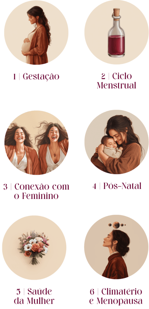 Em todas as fases da vida da mulher, desde os ciclos menstruais até a menopausa. As práticas são conectadas com a energia do ciclo lunar respeitando as fases da vida da mulher.